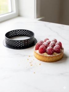 רינג – טבעת נירוסטה בגובה נמוך ללא תחתית. לכן מניחים אותה על תבנית תנור מרופדת בסילפיין או ניר אפיה